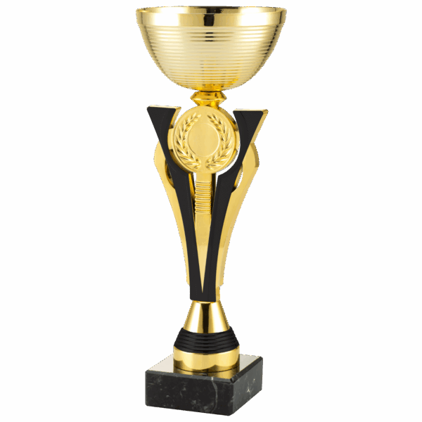 Omschrijving: Fraai vormgegeven trofee. Uitgevoerd in het goud/zwart op een zwart marmeren voet. Heb je het middenconsole gezien? Deze vormgeving zegt alles over deze elegante trofee. Helemaal naar wens te personaliseren vanwege de ruimte in het midden voor een afbeelding/eigen logo. Verkrijgbaar in 3 verschillende formaten.