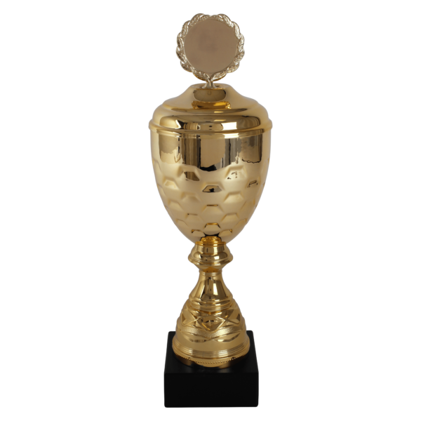 Omschrijving: Gouden grote robuuste beker met een fraai bewerkte bol. Bovenin in deze trofee is er ruimte voor een afbeelding/eigen logo van maar liefst 5 cm. Ik weet wat jij mist……de oren aan de cup? Daarin hebben wij met deze beker nu eens een onderscheid gemaakt en deze zonder de bekende oren geproduceerd. Verkrijgbaar in 4 verschillende formaten.