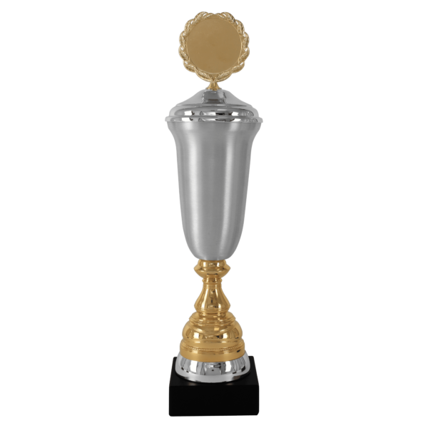 Omschrijving: Smalle elegante trofee, met een mat zilveren lange cup. Ook dit is er weer zo een om te watertanden. Heb je de gouden accenten gezien? Bovenin is er ruimte voor een afbeelding/eigen logo van maar liefst 5 cm. Verkrijgbaar in 5 verschillende formaten.